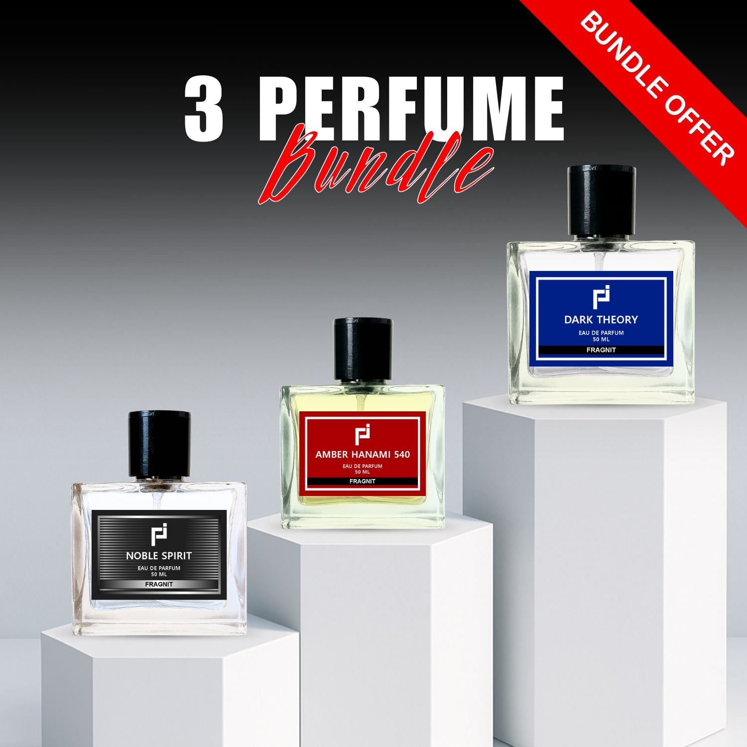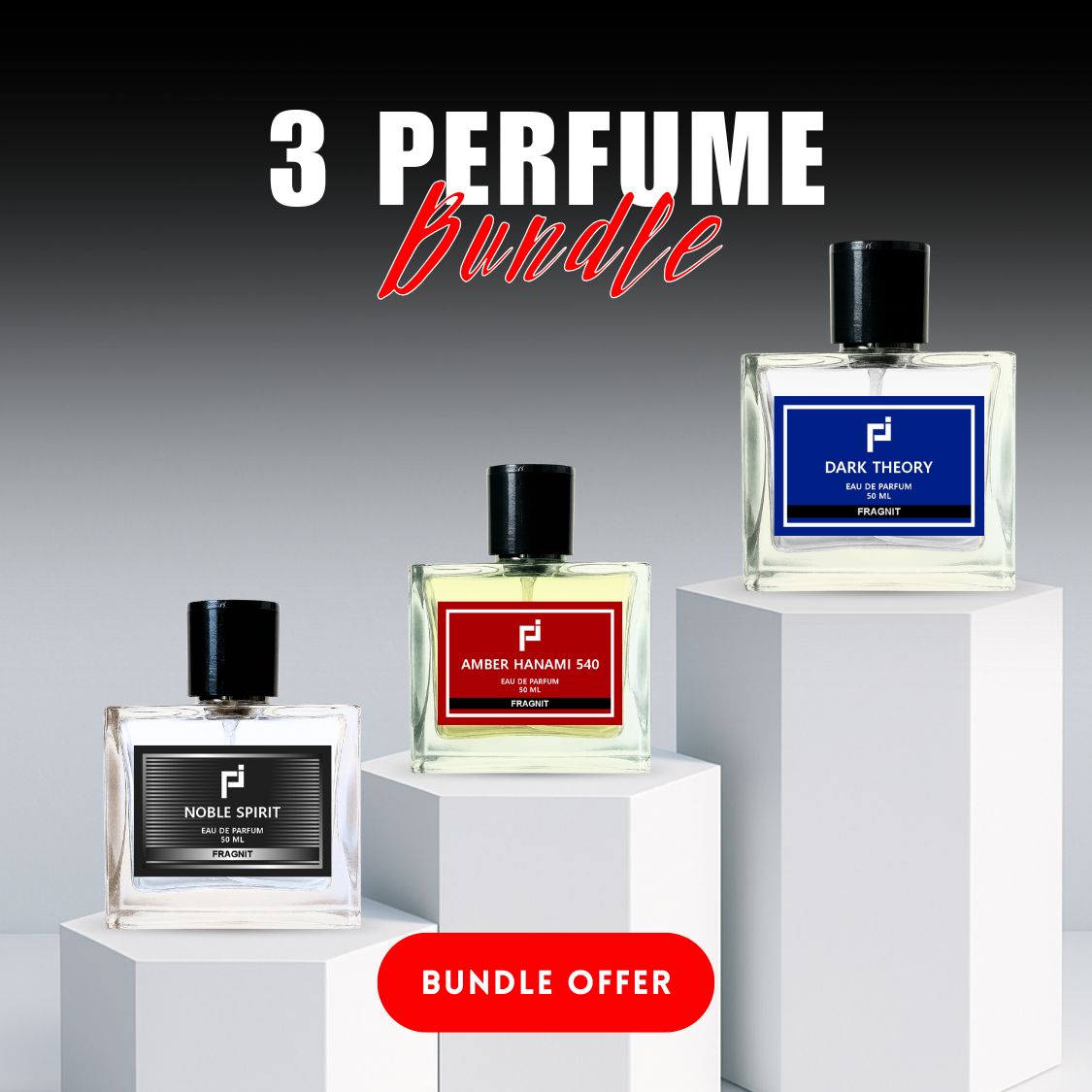 Three unique perfumes that complement every moment — amber warmth, woody depth, and fresh clarity.