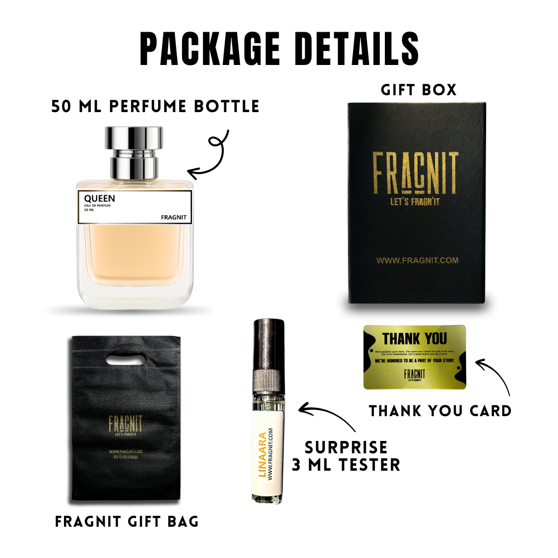Designed for women who rule with charm and confidence, Queen feels both classic and modern — a fragrance that leaves a refined impression wherever you go.